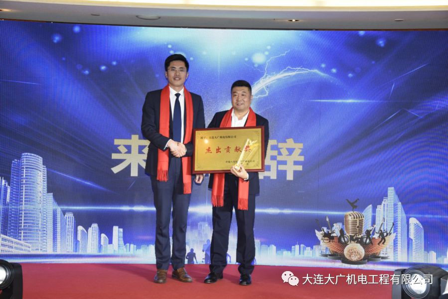 年會的特約嘉賓畢從福先生百忙之中撥冗出席,在致辭中表達了對大廣機電的認可,同時也給予了一定的指導、鼓勵。并在年會現場,授予大廣機電“杰出貢獻獎”。大廣定不負領導期許,高標準,嚴要求,再創佳績。