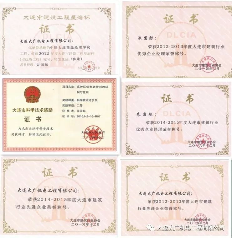 大連大廣機電工程有限公司推行標準化管理,推廣新技術,提高工程效率,提高工程質量,獲得了社會信譽和行業榮譽。